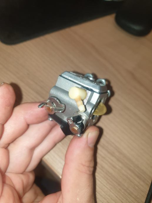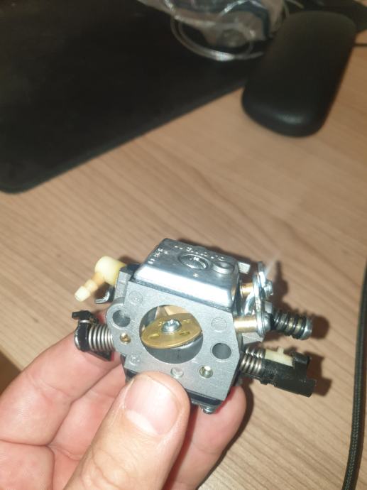 uplinjač (frgazar) za motorno žago Husqvarna 357XP/359 stari tip. Urejen vzvod za nastavitev štand gas. Popravil potem, ko sem na servisu debelo plačal za novega.