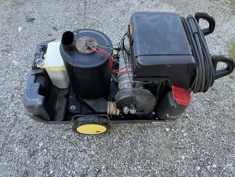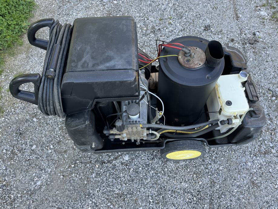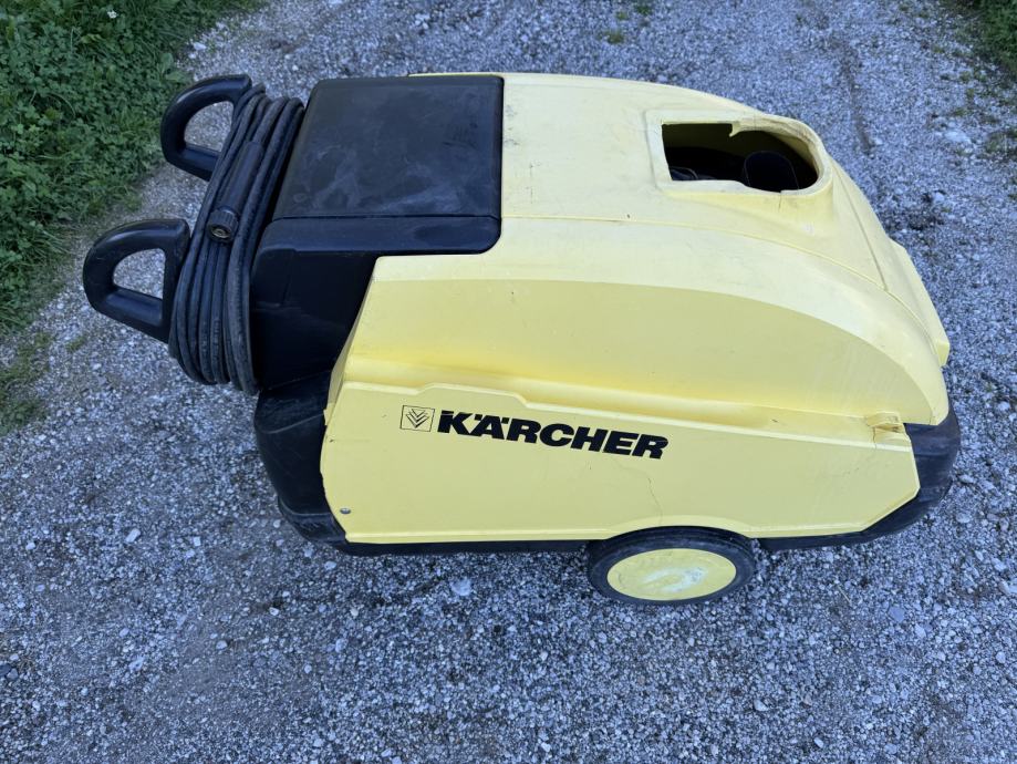 Visokotlačni čistilec deluje odlično. Ravnokar narejen komplet servis. Poškodovano edino plastično ohišje stroja.