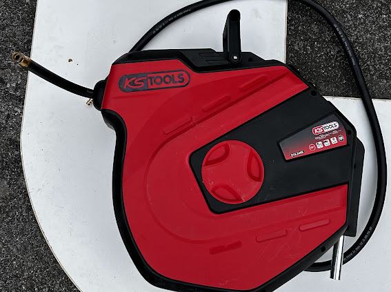 Prodam robusten KS Tools avtomatski rolo za kompresorski zrak, dolžine 15 metrov in premera cevi Ø 13 mm.