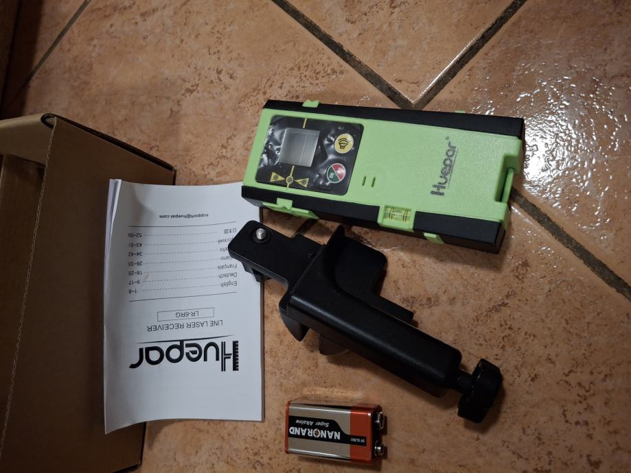 Sprejemnik laserskega žarka za laserske nivelirje. Sprejema rdeči in zeleni žarek.