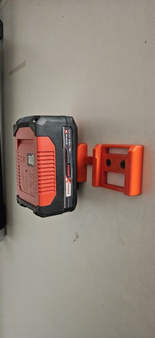 Kompakten nosilec za baterijo, z luknjama za pritrditev z vijakoma. Možna pritrditev na steno, pod mizo, v kombi... Baterija se zaskoči tako, da ni nevarnosti, da bi padla iz nosilca. Sprosti se s pritiskom na gumb, enako kot na baterijskem orodju. V črni ali svetlo rdeči barvi. Lahko pošljem po pošti.