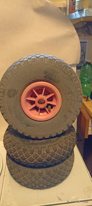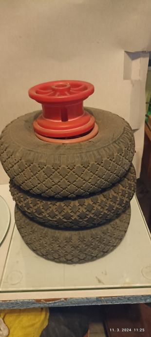 3 gume z platišči in eno platišče brez gume za voziček ali rudel. polne gume z osjo 10€