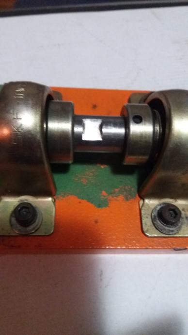 Os z ležaji na plošči 200mm x110mm x14mm .Os debelina 20mm . Dolžina170 mm .