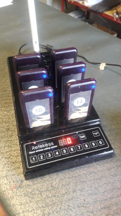 Prodam rabljen sistem za iskanje, obveščanje gostov o pripravi hrane, v gostinskih prostorih, delavnicah, gledališčih. Sistem je rabljen. Vsebuje 6 kom. pipserjev, bazno enoto in polnilec. Kako deluje: oseba katera želi priklicati imetnika pipserja ( gosta o pripravljeni hrani ITD ) pritisne na tipko na bazni enoti in gost sliši signal ali vibracijo ) Domet pipserjev je na odprtem prostoru do 400 met, v zaprtem pa 200 met. Pri meni se lahko sistem preizkusi na vse mogoče načine. Ferdo +386 41678216 lokacija Maribor. Lep pozdrav