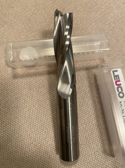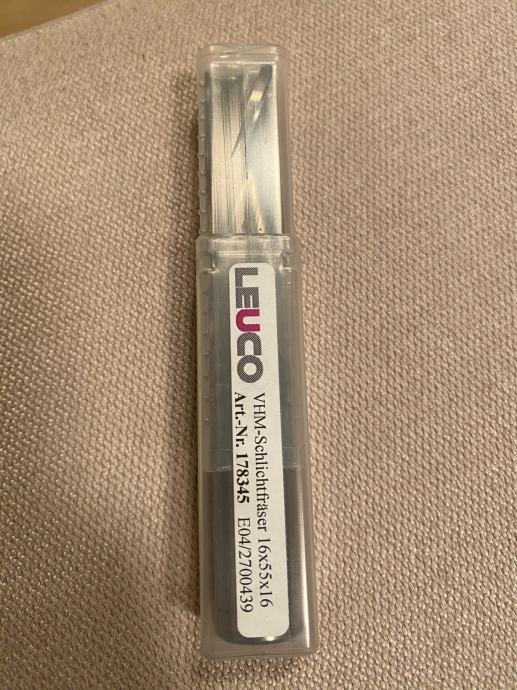 je spiralni rezkar LEUCO (end mill) s premerom 16 mm, delovno dolžino 55 mm in vpetjem 16 mm, namenjen za obdelavo lesa na CNC strojih.
