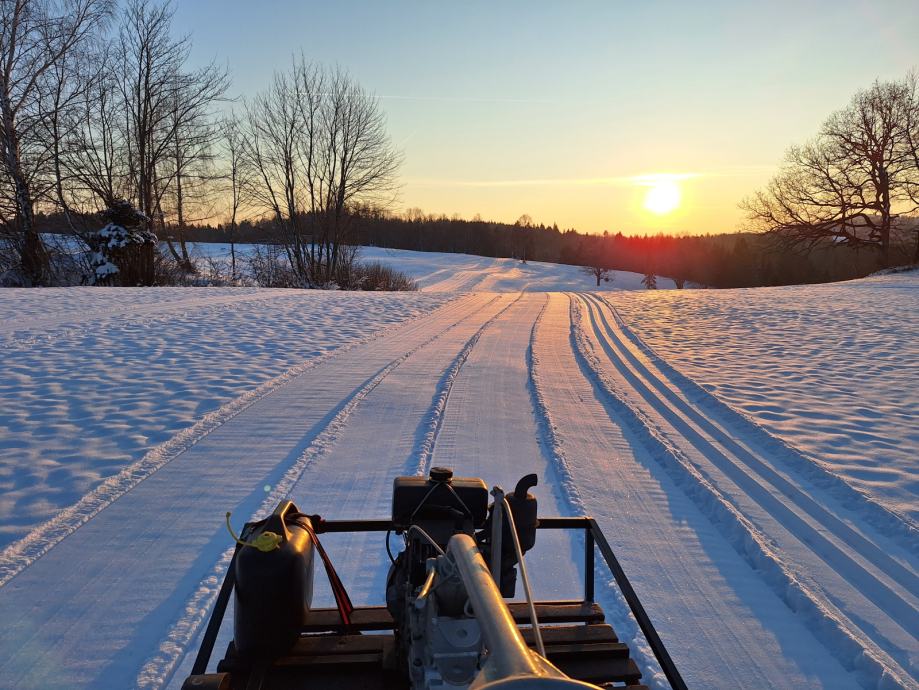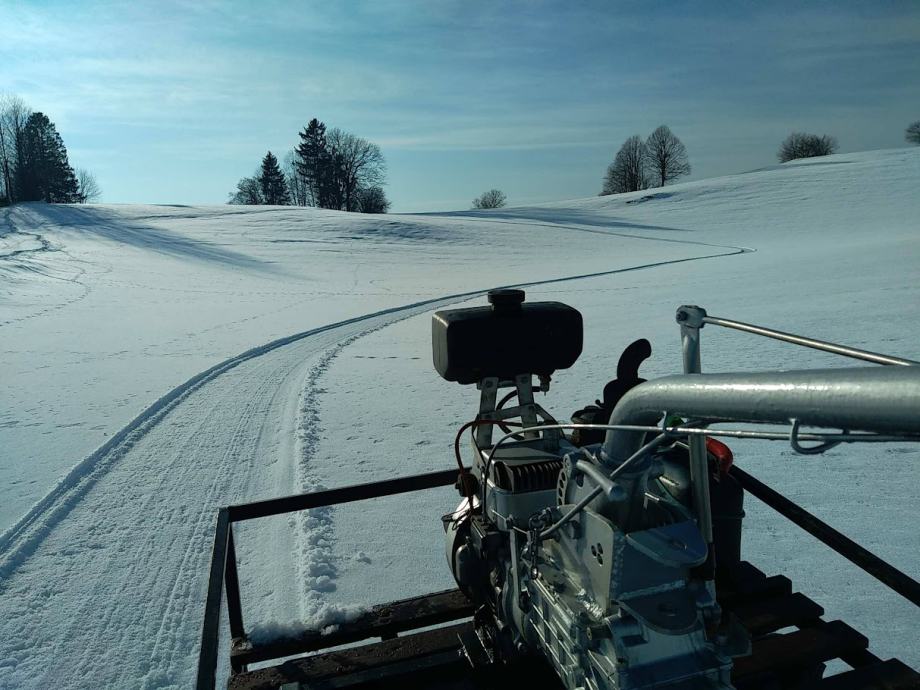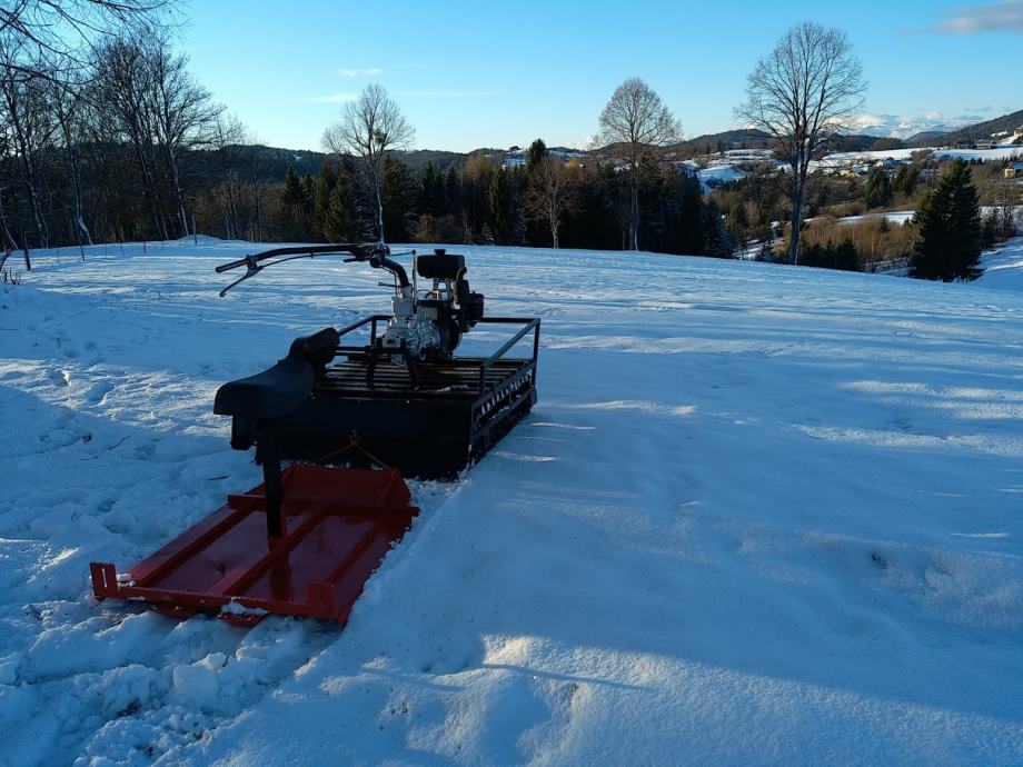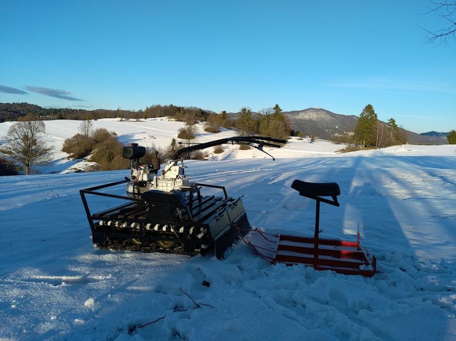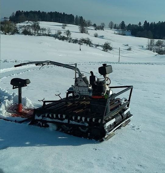 Teptalec snega za urejanje tekaških prog za klasično in drsalno tehniko z vsemi priklopi. Zelo praktičen in okreten. Zaradi svoje velikosti ga lahko prevažate na avtomobilski prikolici. Možna izdelava prog že ob nizki snežni odeji. Poleg prilagam še en delujoč motor za rezervo.