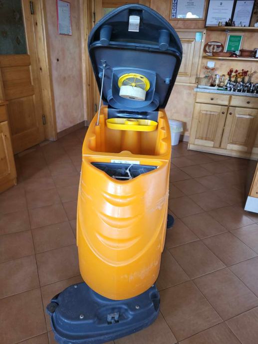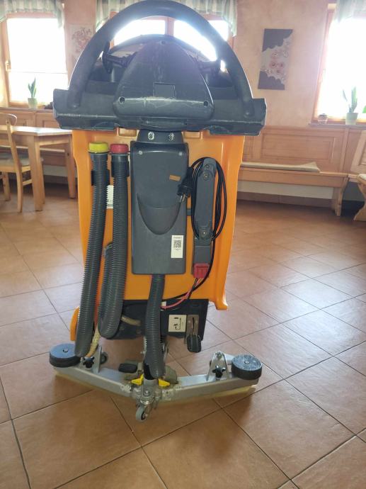 Stroj je samohodni in ima kontrolirano doziranje čiste vode na čistilno krtačo, ima merico za doziranje čistila.