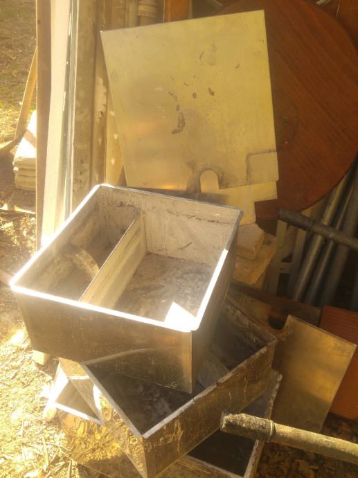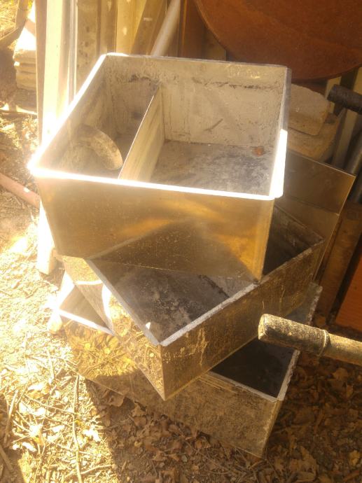 Inox posoda z dvemi prekati, v prvega prieče voda z trdimi delci, voda se nato prelije v drug prekat ter odteče skozi nižje ležeči odvod. Posode imajo tudi inx pokrove. Cena na komad