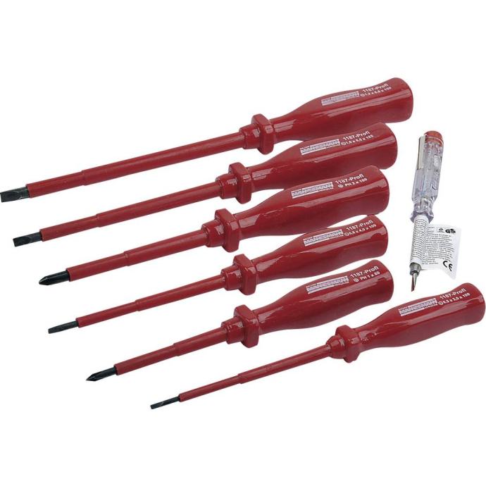 ZnačilnostiIzolirani do 1.000 VStebla izvijačev iz krom-vanadijevega jeklaV skladu z VDE OpremaIzolirani do 1.000 V.Dobava vključuje4 zarezne izvijače (0,4 x 2 x 100 mm/0,8 x 4 x 100 mm/1 x 5,5 x 125 mm/1,2 x 6,5 x 150 mm)2 križna izvijača (PH 1 x 80 mm/PH 2 x 100 mm)Preizkuševalec napetosti 60 mm.Tehnični podatkiMaterialKrom-vanadijevo jekloPodročje uporabe (izvijač)VDEPogonPloščati, Križni PhillipsVrsta izdelkaKomplet izvijačev
