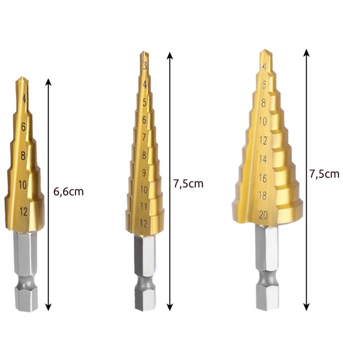 Set stožčastih svedrov HSS HEX konusna povrtala smrekica je idealen za vrtanje v različne materiale, vključno s kovino, lesom, plastiko in še več. Ne glede na to, ali se ukvarjate z domačimi popravili, izdelavo pohištva ali profesionalnimi gradbenimi projekti, boste našli pravi sveder za vaše potrebe.