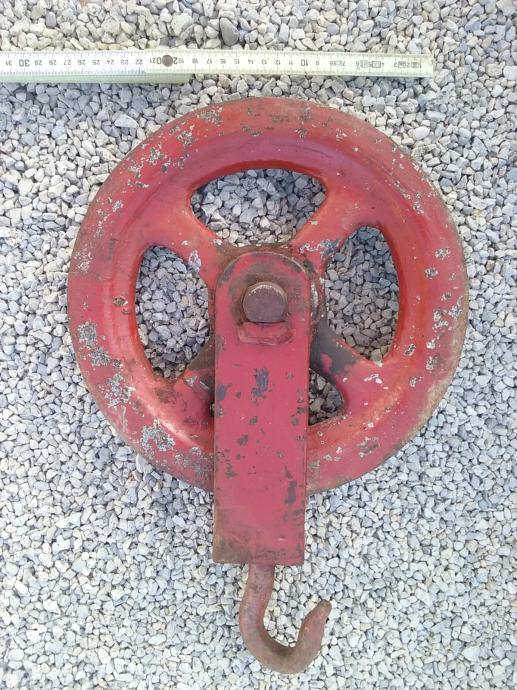 Škripec za mala , še posebej pa za velika, večtonska bremena. Rabljen samo nekajkrat ,zato v odličnem stanju. Premer kolesa je 280 mm.