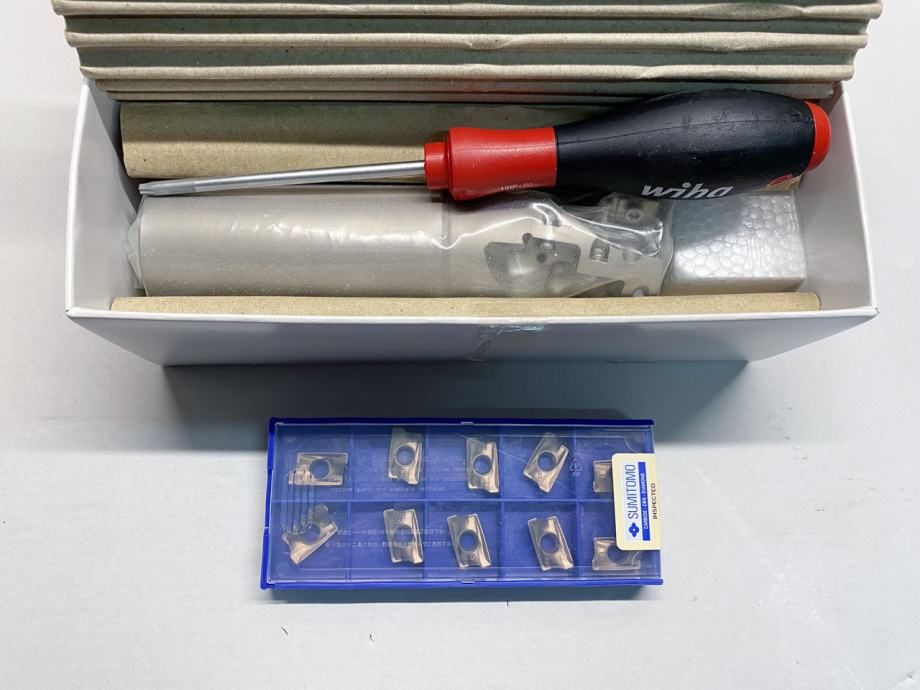 Prodam nov stebelni rezkar znamke Sumitomo. Rezkar je na 9 ploščic, premera 40 mm in dolžine 150 mm. Zraven priložim komplet desetih ploščic.