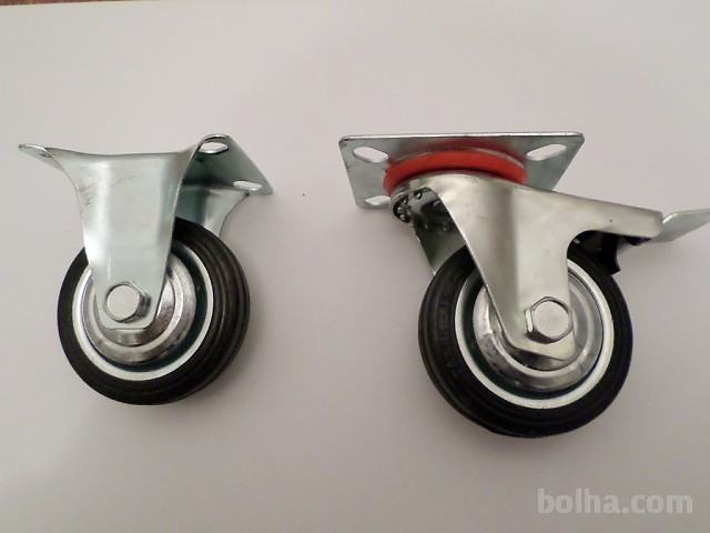 Kolo Y1 fiksno, promer 75 mm, nosilnost 55 kg, cena 3,90 €, kolo Y1 vrtljivo z kočnico, promer 75 mm, nosilnost 55 kg, cena 4,90 €