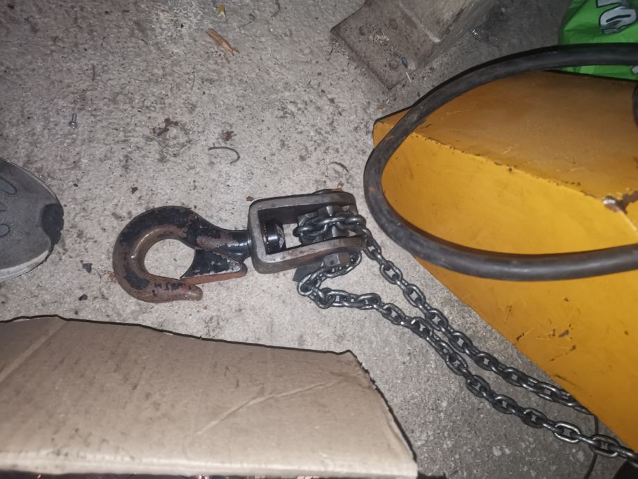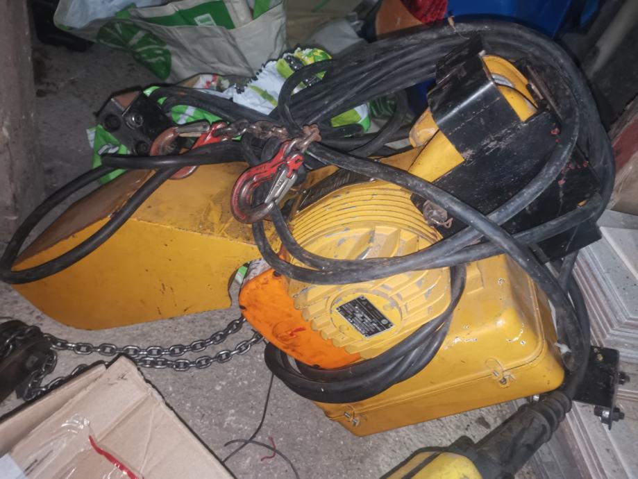 Prodam delujoč verižnik nosilnost 250kg, višina dviga 6,4m. Letnik 87.