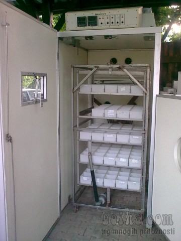 PRODAM PROFESIONALNI VALILNIK IN IZVALILNIK ZA VALJENJE JAJC, IMA AVTOMATSKO KRMILJENJE ZA TEMPERATURO, ZA VLAGO, IN OBRAČANJE JAJC.