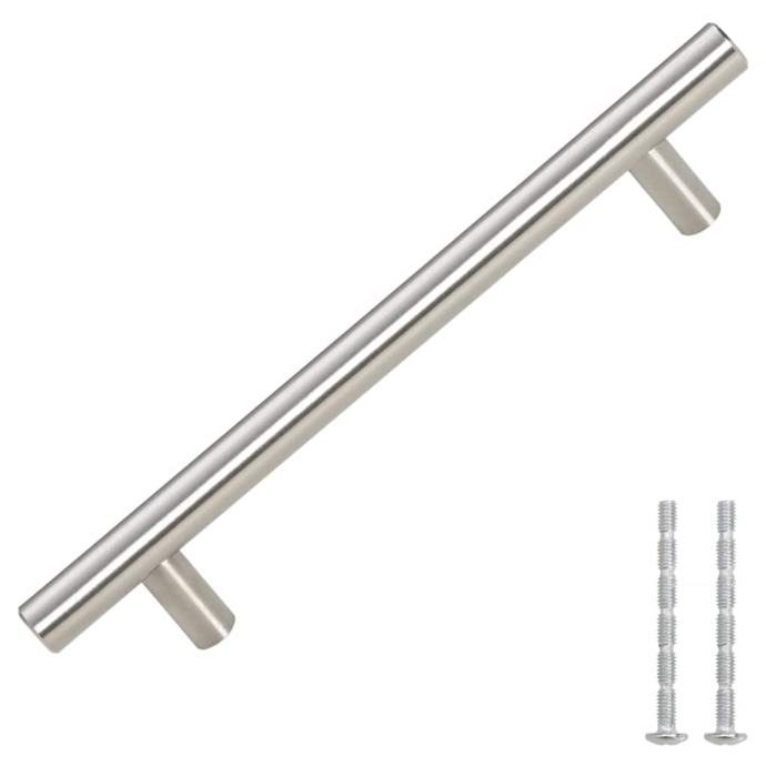 Ti ročaji za omarice, ki se ponašajo s preprostim in modernim dizajnom, bodo omaricam v vašem domu dodali videz elegance. Vzdržljiv material: Ročaj vrat je izdelan iz trpežnega brušenega nerjavečega jekla, ki je odporen proti koroziji in rji.Široka uporaba: Ročaj predala je primeren za različne omare, predale, omarice, garderobne omare, kredence, lesene kovčke itd.Praktična zasnova: Ročaj za omarico je oblikovan v obliki črke T za lažji prijem.Vijak za rezanje: Vijak je mogoče rezati, da ustreza različnim debelinam plošč po vaših potrebah.