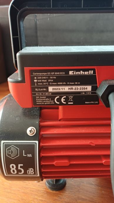 Novo vrtno črpalko Einhell prodam. Teža 6kg, zložljiv ročaj, toplotna zaščita, dolžina kabla 1,5m.
