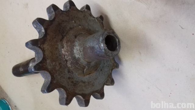 Prodam zobčenik z osjo premera 30mm dolžine 220mm z utorom za moznik 8mm. Zobčenik masivne izvedbe 15 zob debeline 16mm, premer zobčenika je 132mm.