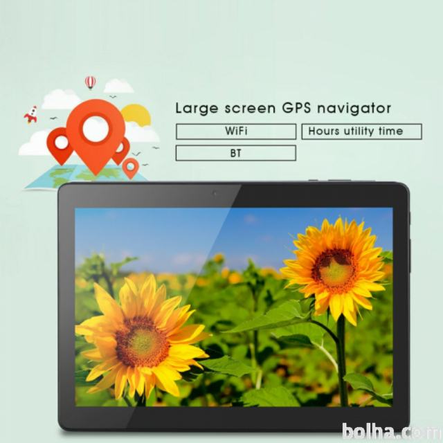 NOV, vrhunski, zelo velik tablični računalnik, tablica 10" 10.1 palčni palcni incni inčni (diagonala ekrana meri 24,1 cm) 3G tablični računalnik tablicni racunalnik tablice tablični računalniki gps navigacija navigacije z vgrajenim GPS satelitskim sprejemnikom (na napravo je možno brezplačno naložiti tudi GPS navigacijo, kot je na primer iGO Primo,TOM TOM, HERE iGO Amigo, iGO 8, Navigon, Garmin ipd.), zelo hitrim procesorjem, 10-točkovnim, najnovejšim, IPS, kapacitivnim ekranom, dual SIM card, dve sim kartici, davčna blagajna (primerna za uporabo davčne blagajne / davčna blagajna), z 1280 x 800 FHD resolucijo, dvema režama za SIM kartico (možna uporaba tudi kot pametni telefon in prenos podatkov oziroma koriščenje interneta tudi tam, kjer ni Wi-Fi-ja), ter kar 16 GB notranjega spomina z možnostjo razširitve na skupno 48 GB.