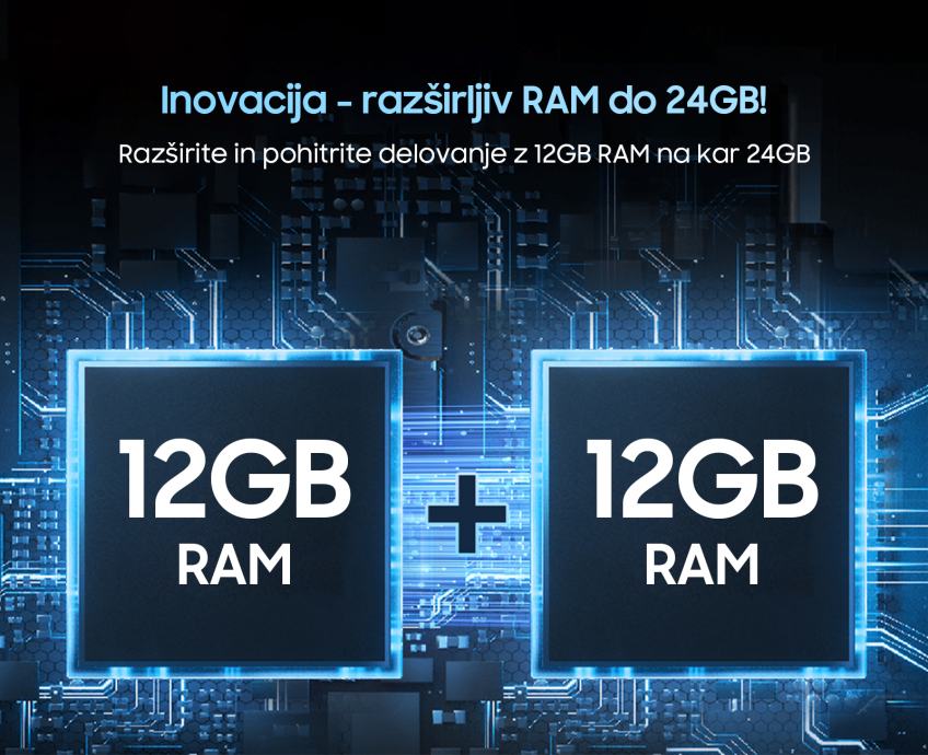 Delovni pomnilnik (RAM): 12 GB, razširljiv do 24 GB (LPDDR4X)