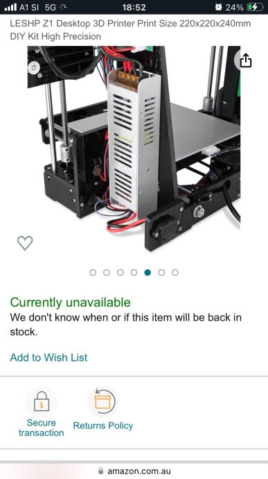 Prodam omenjeni 3D printer LESHP Z1, kupljen na Azurefilm, prodajan kot tiskalnik “Orres” DIY Kit High Precision.