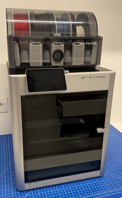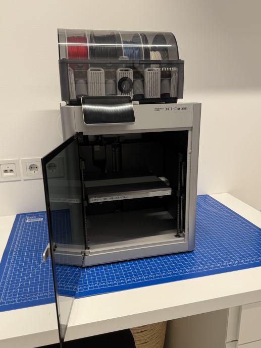 Prodam malo rabljen, odlično ohranjen 3D tiskalnik Bambu Lab X1C z izmenjevalnikom filamentov za večbarvno tiskanje AMS. Tiskalnik je odlično ohranjen, popolnima brezhiben, še z originalnim hotendom in vso originalno priloženo dodatno opremo. Star je dobro leto in ima za sabo 700 ur tiskanja, večinoma enobarvnega s PLA filamenti.