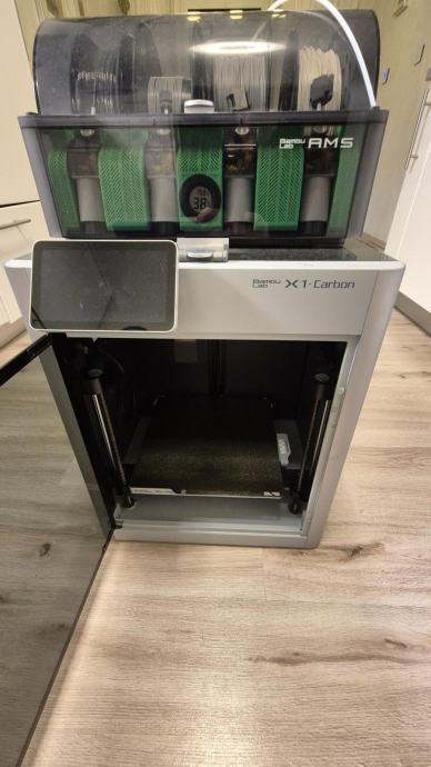 Prodam zelo lepo ohranjen Bambu Lab X1C z AMS enoto in originla novo 'zlato' ploščo.