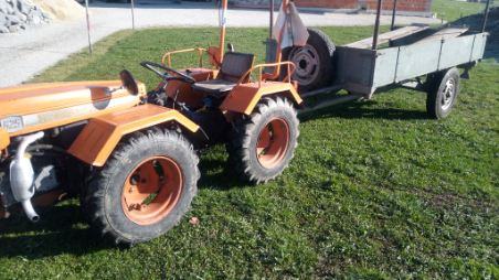 Prodam Carrarota 22 kw. Lombardini motor, 2 celindra, brez zračnosti. Carrao je bil kompletno obnovljen in redno vzdrževan. Gume 100%, tritočkovni priklop. Traktor je registriran. Prodam v kompletu z transportno prikolico, ki je masivne izdelave. Prikolica ima nove gume, rezervno kolo, luči, podporno kolo in podaljške. Oboje v vrhunski delovni kondiciji.
