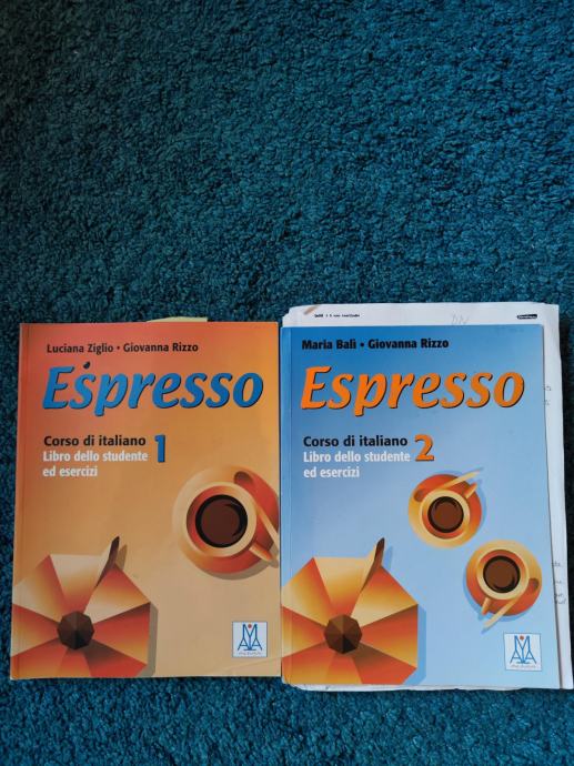 prodam učbenika za italijanski jezik Espresso 1 in 2, skupaj za 15 eur.