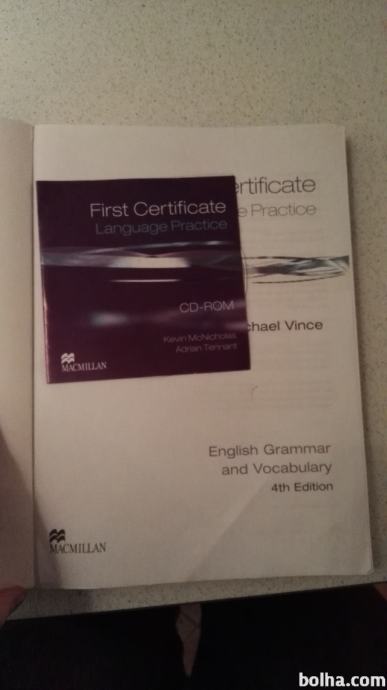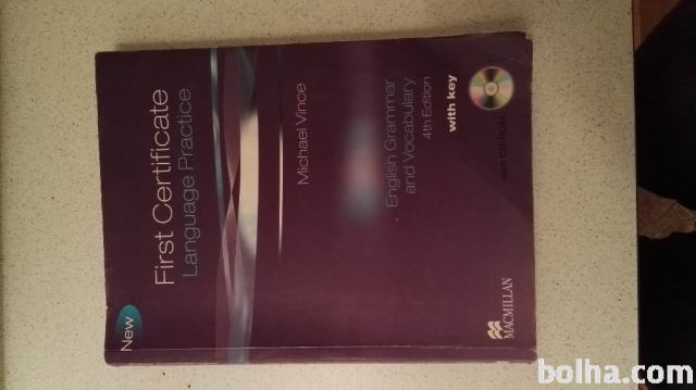 Prodam učbenik z vajami First certificate language practice za angleško slovnico in besedišče, primeren za pripravo na B2 izpit oziroma za tiste, ki se pripravljajo na Cambridge FCE examjnation. Odličen tudi za pripravo na maturo. Popisanih samo prvih nekaj strani, zraven tudi CD.