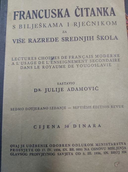 FRANCUSKA ČITANKA ZA VIŠE RAZREDE SREDNJIH ŠKOLA