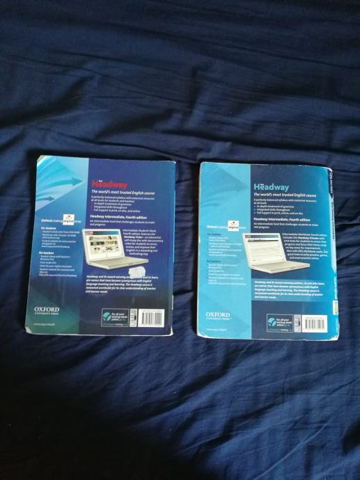 Prodam učbenik in delovni zvezek za angleščino Headway Intermediate Fourth edition. Cena za enega je 10 €.