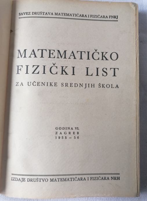 Na voljo je lepo ohranjena knjiga MATEMATIČKO FIZIČKI LIST,
