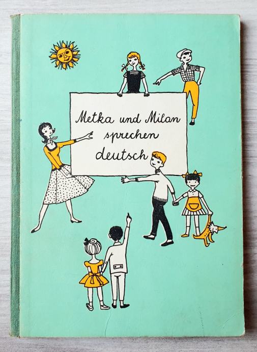 Prodam knjigo METKA UND MILAN SPRECHEN DEUTSCH : NEMŠČINA ZA MALE ZAČETNIKE - PRVI DEL, Pavel Karlin, Manca Storova, DZS 1959, mehka vezava. 72