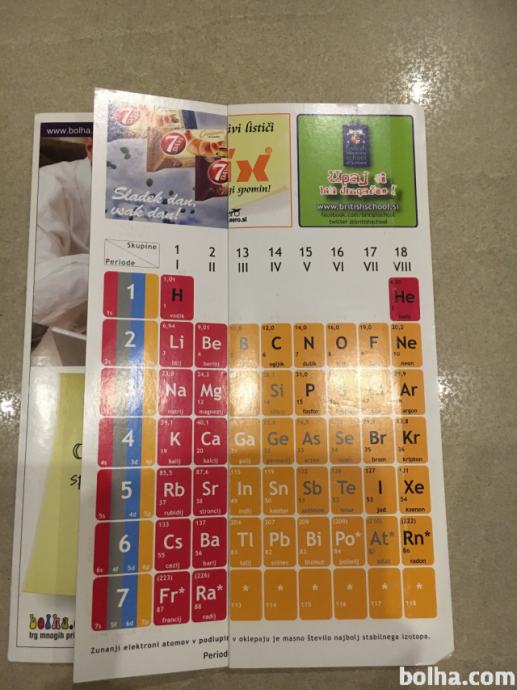Prodam PERIODNI SISTEM ELEMENTOV za pomoč pri učenju kemije v osnovni in srednji šoli.