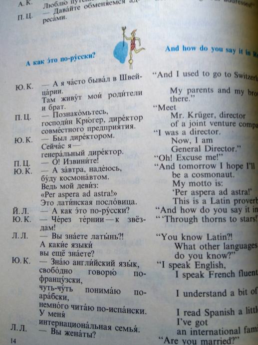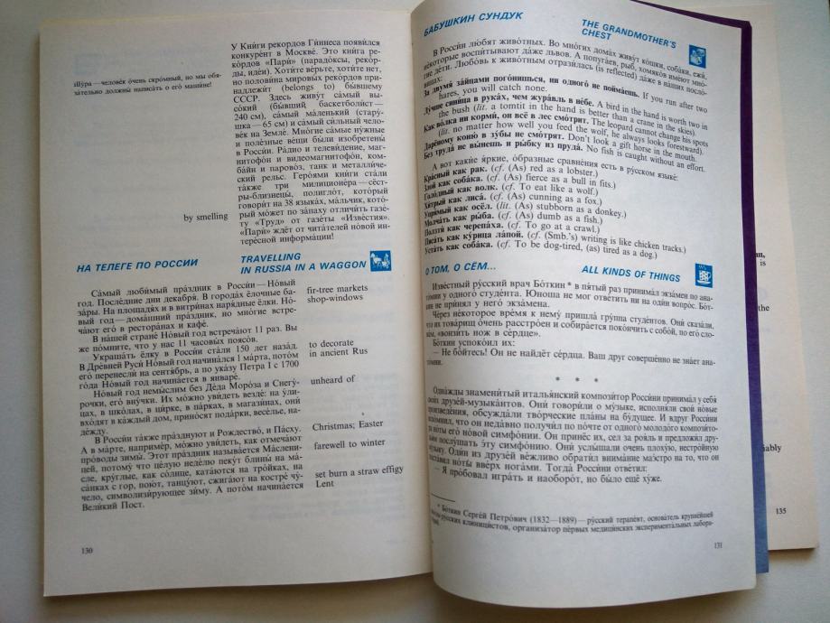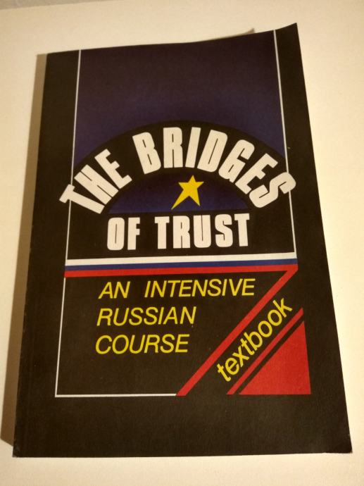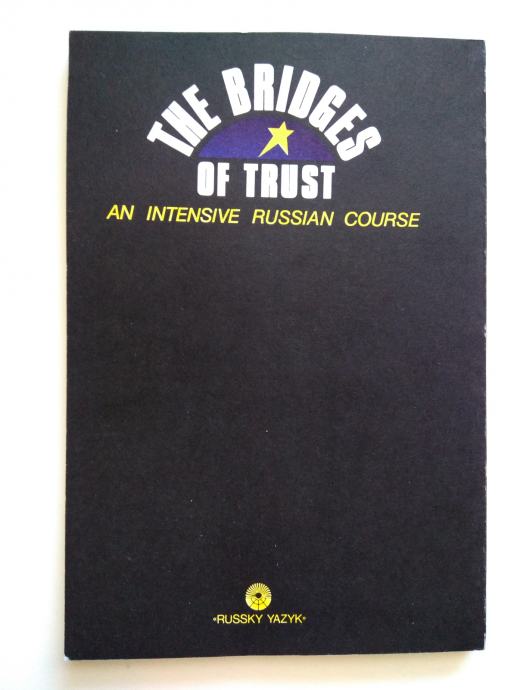 Učbenik The bridges of trust - an intensive Russian course (Mostovi zaupanja - intenzivni tečaj ruščine) v angleškem jeziku. Mehka vezava, obseg 181 strani, izdajatelj Russky Yazyk, Moskva,1993.