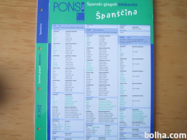 Španščina glagoli 5 eur (PONS. plastificirano A4 format, ima tudi luknje da se lahko vstavi v akto)