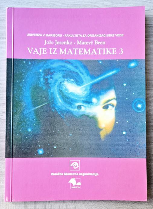 Prodam knjigo VAJE IZ MATEMATIKE 3, Jože Jesenko, Matevž Bren, Moderna organizacija 2000, mehka vezava. 237