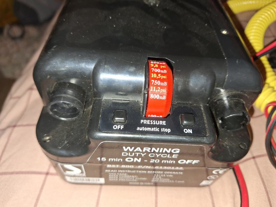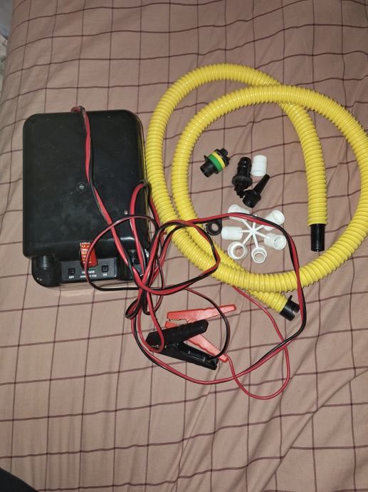 Prodam zelo malo rabljeno akumulatorsko zračno črpalko za napihovanje kajaka, čolna itd. Pumpa izredno hitro, tako da je bil čoln dolžine 2,7 m napihnjen v cca 10 minutah.