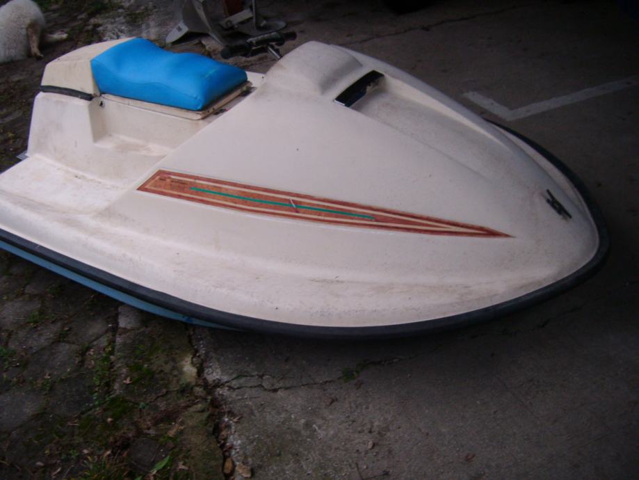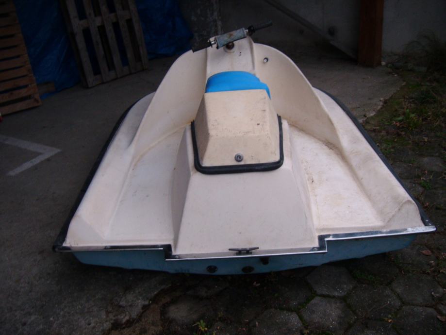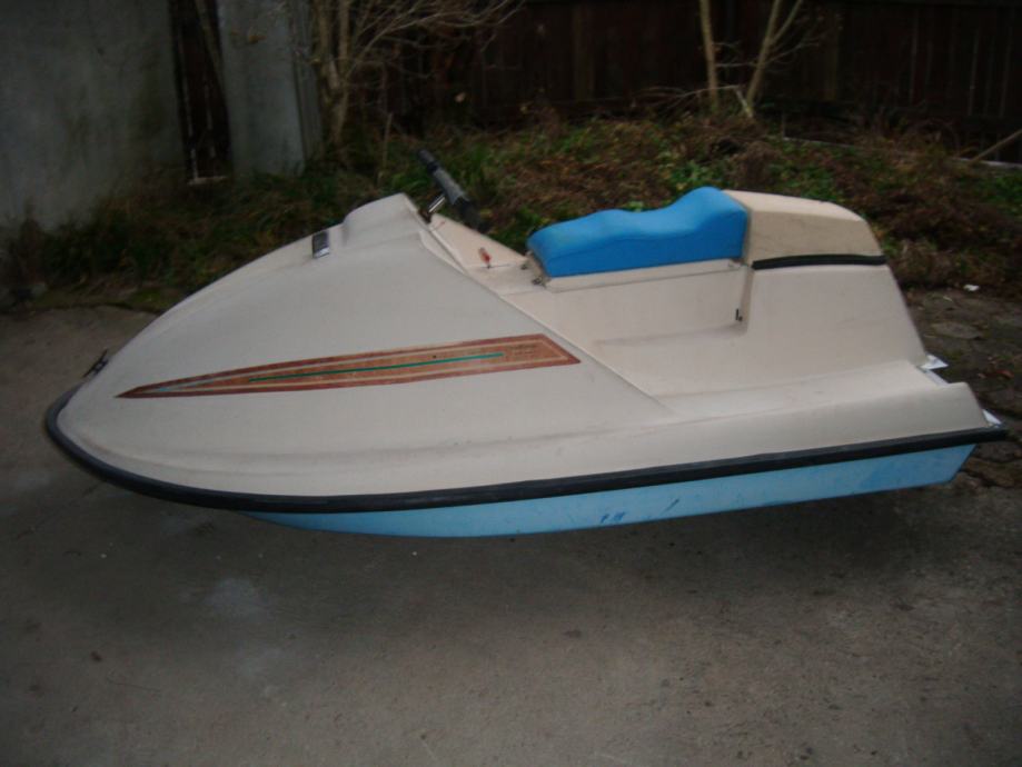 MALI ČOLN - MINI VODNI SKUTER, dolžina 250 cm, širina 150 cm, teža cca 40 kg, nosilnost za dve osebi, z motorjem TOMOS - motor vrti, vendar bi zaradi dolgo letnega mirovanja bil potreben servis. Ob vgradnji električnega motorja bi bil primeren tudi za plovbo po jezeru in reki. Čolniček je primeren za ribičijo, zabavo... Ne potrebuje registracije.
