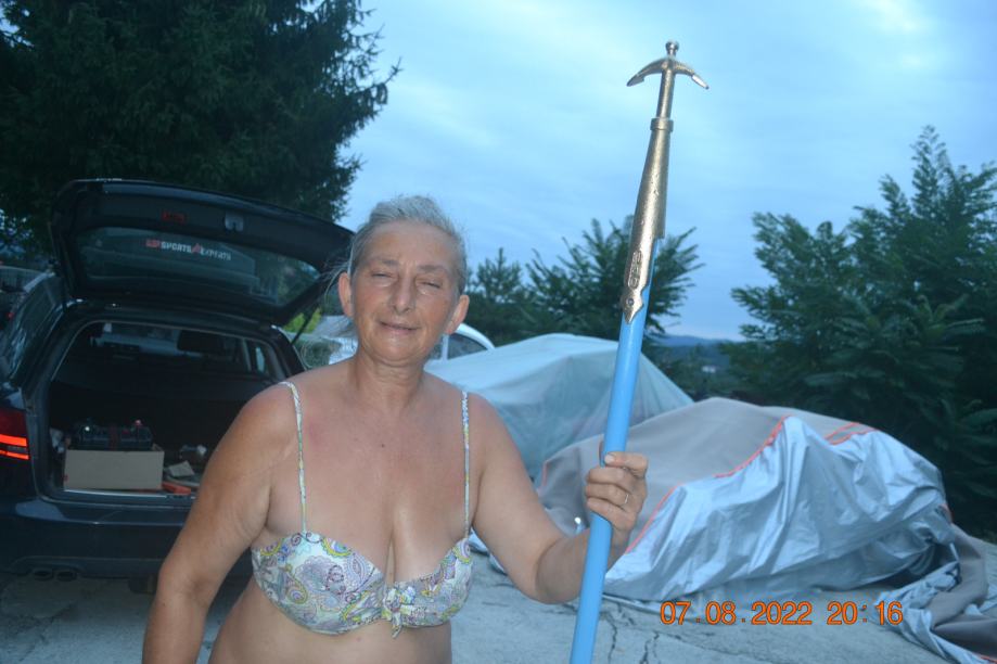 Prodam mornarski kavelj za privez plovil, palica za privleko plovil, čaklja, starinski izgled, vendar povsem funkcionalen.