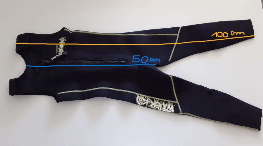Prodam zelo dobro ohranjen otroški neopren. Mere so napisane na fotografiji. Vse zadrge na neoprenu so delujoče in nikjer ni poškodovan.