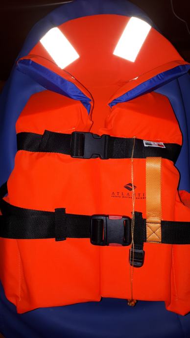 Nov neporabljen, z varnostno piščalko, mednožnim pasom, oporo za glavo in odsevniki.