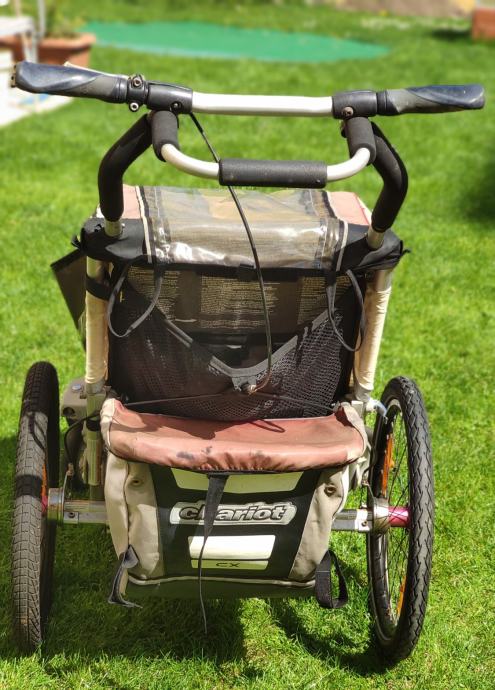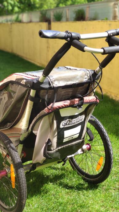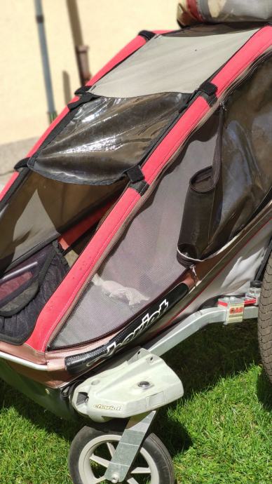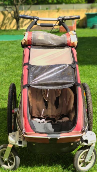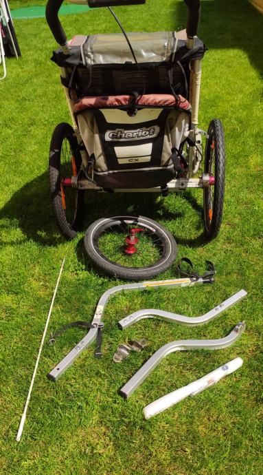 Vključuje Strolling kit (2 majhni kolesi), Jogging kit (sprednje enojno kolo) in Bike kit (priključek za kolo). Priključek je za običajen tip koles - patent na zadnjem kolesu na katerega se voziček priklopi.