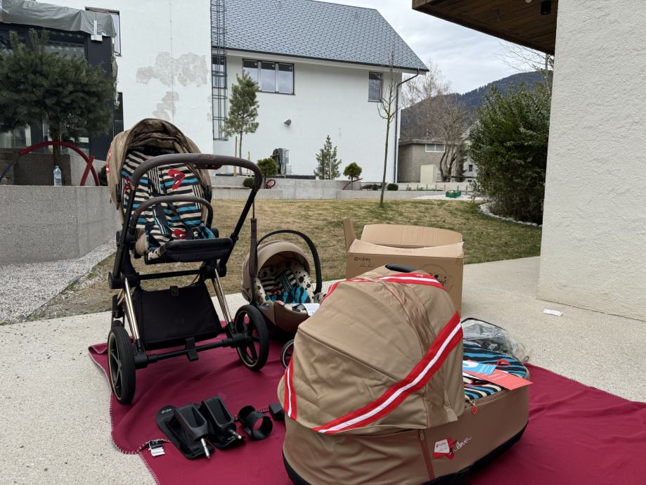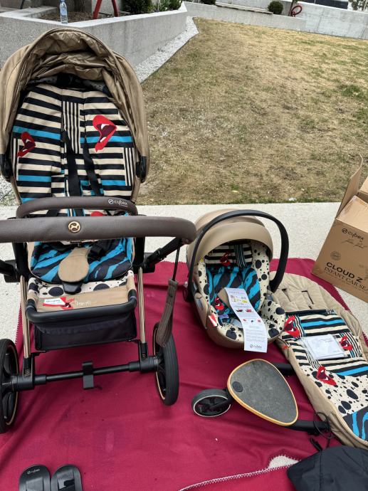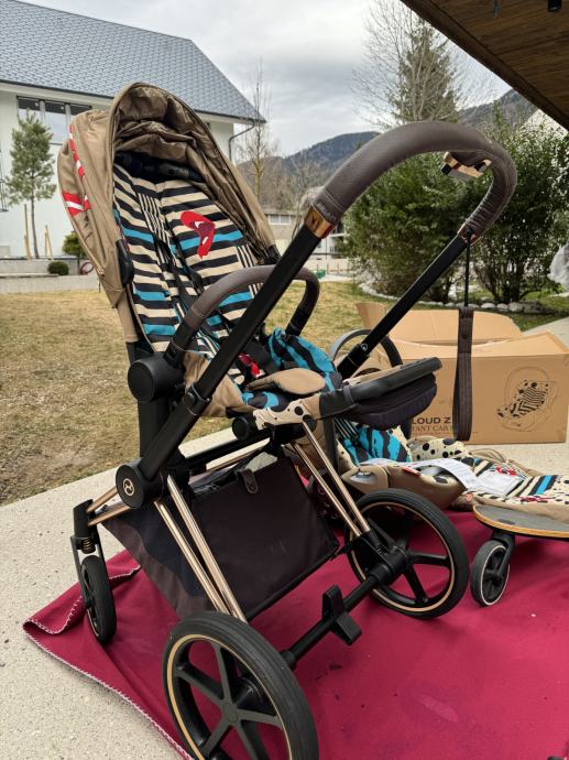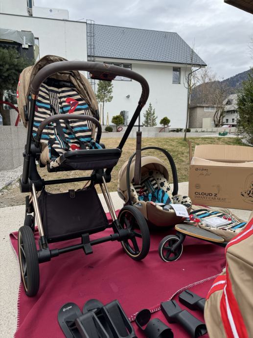 Na voljo je dobro ohranjen otroški voziček znamke Cybex Priam, ki je idealen spremljevalec od rojstva do malčkovih prvih korakov. Voziček je v lepem stanju in prihaja z bogatim kompletom dodatkov, ki zagotavljajo udobje in praktičnost v vseh letnih časih.