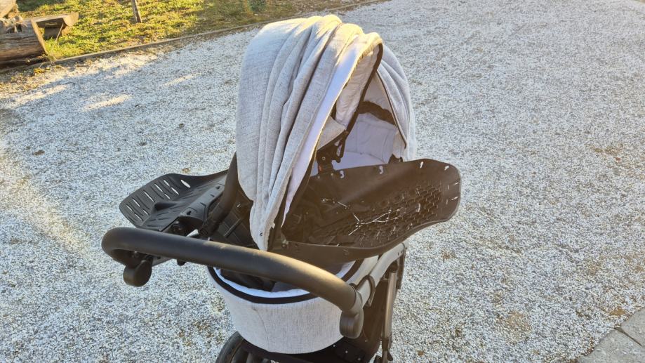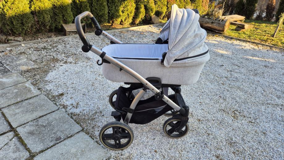 Prodajamo rabljen voziček s košaro, športnim delom, previjalno torbo in nosilci za lupinico Maxi Cosi. Blazine športnega dela na fotografijah niso nameščene, ker so ravno oprane.