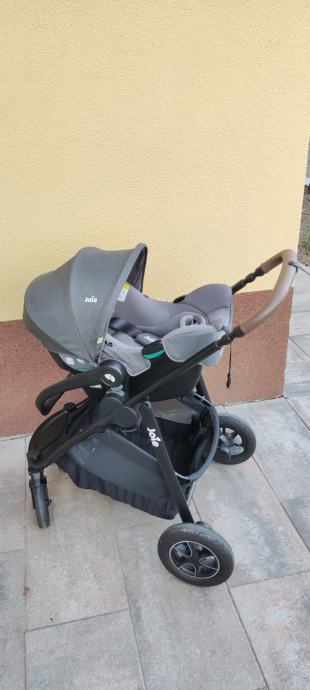 Prodam rabljen otroški voziček Joie 3v1 - lupinica, košara in športni del se lahko namontirajo na ista kolesa.