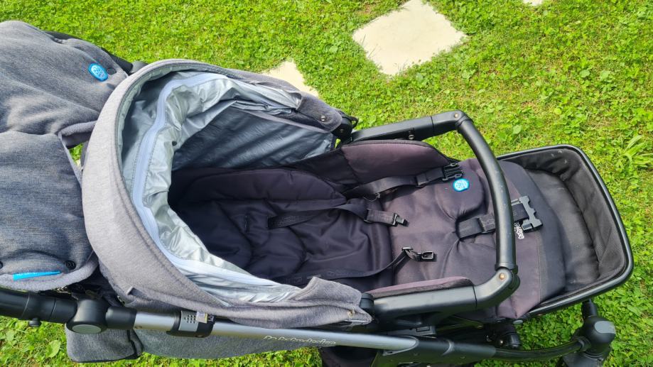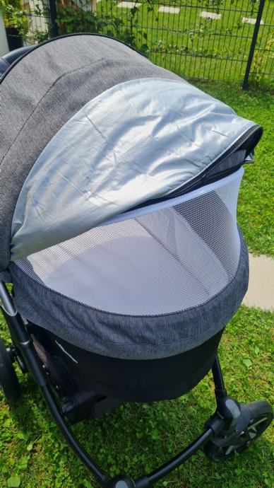 - strehici pri košari in športnem delu imata UV zaščito in integrirano mrežico proti komarjem, skrita v žepu z zadrgo pri strešici