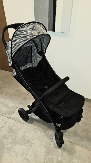Voziček je izjemno vodljiv, lahek in zložljiv v eni potezi. Zložen voziček zavzame zelo malo prostora.