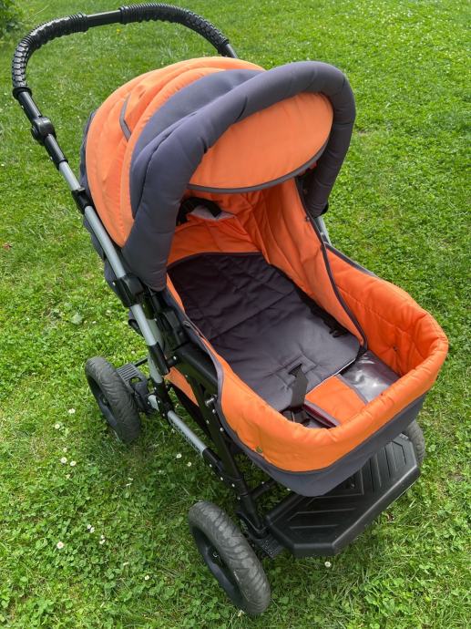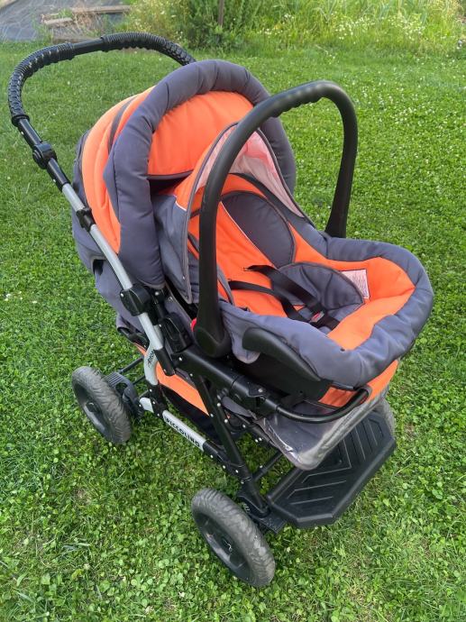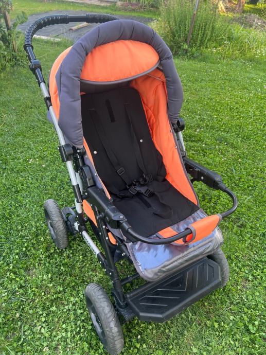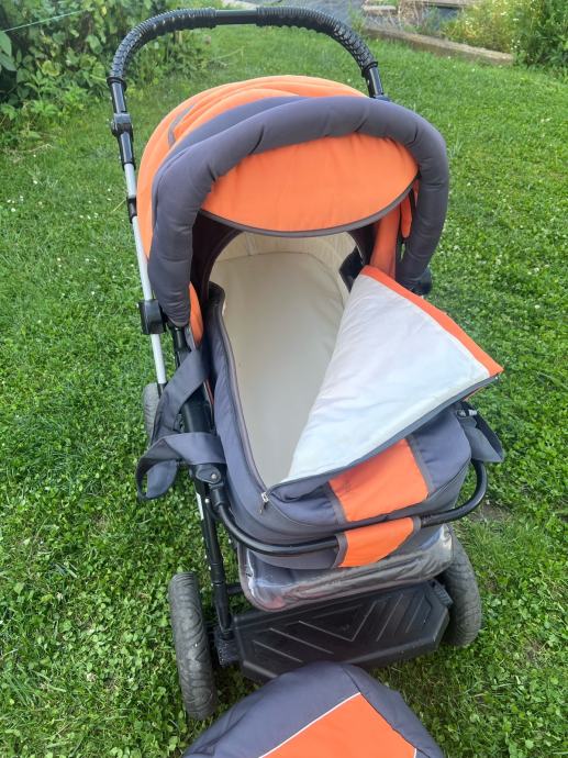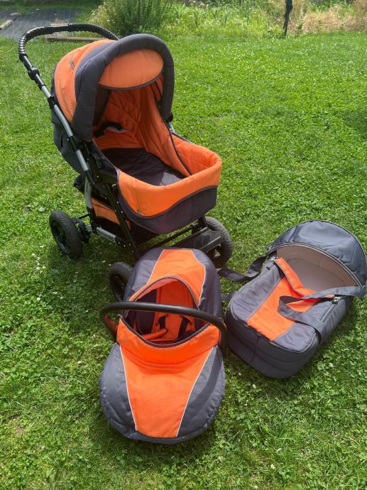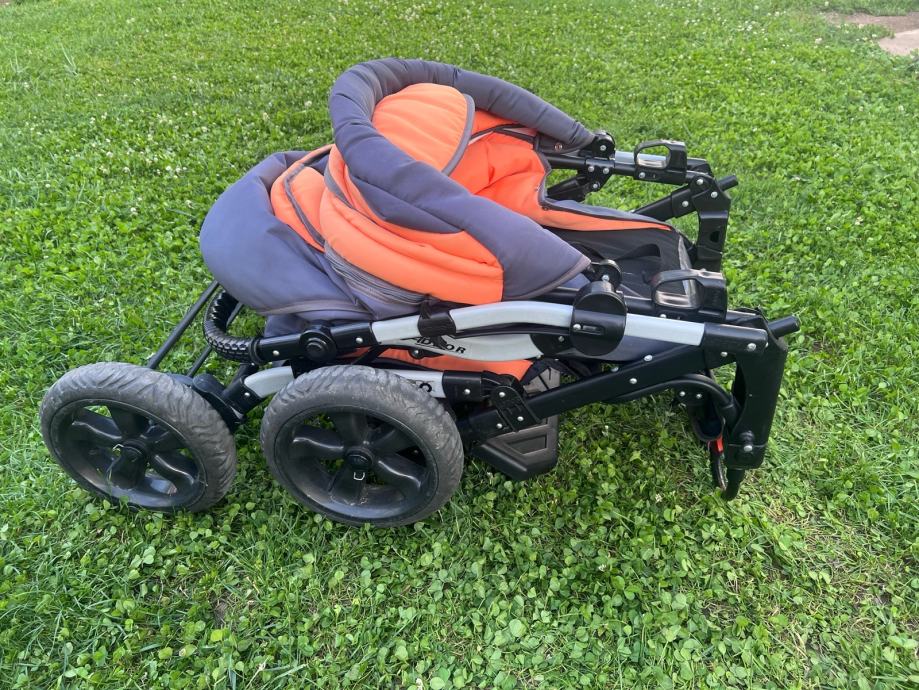 Otroški voziček 3v1 Adbor s košaro ter lupinico in športnim delom z varnostnim zapenjanjem. Aluminijasto ogrodje, dvojno vzmeteno, velika napihljiva kolesa, zavore, nastavljiv ročaj. Enostavno zlaganje. Košara in žepi za odlaganje stvari. Odstranljive in pralne podloge in zaščite. Nastavljivo naslonjalo, opora za nogice in strehica. Dežna prevleka in zaščita proti mrčesu.